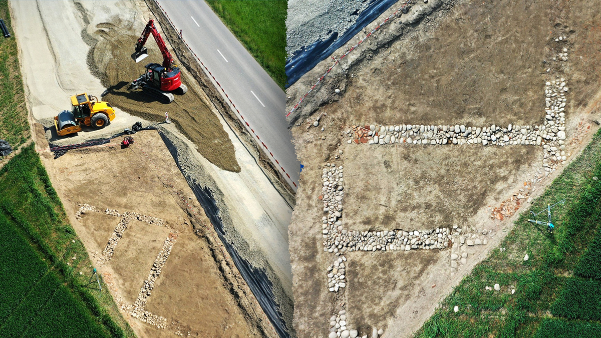 A pedestrian helped uncover an Ancient Roman building, according to the Swiss canton of Solothurn. “It soon became clear: A Roman building is buried here.” The stone foundation was shockingly close to the road. (Kanton Solothurn via Facebook)