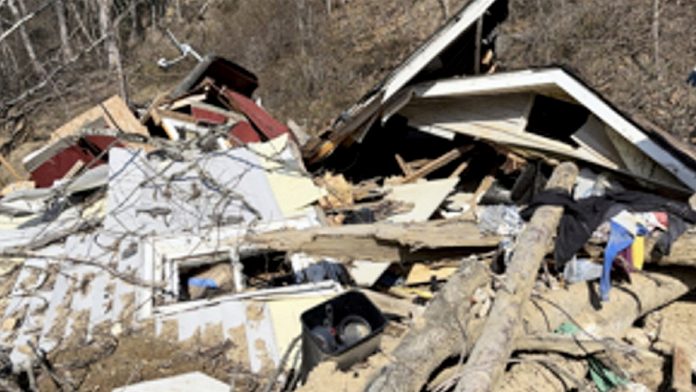 The couple’s house was pushed off its foundation, forcing them to flee with their three pets, news agency SWNS reported.